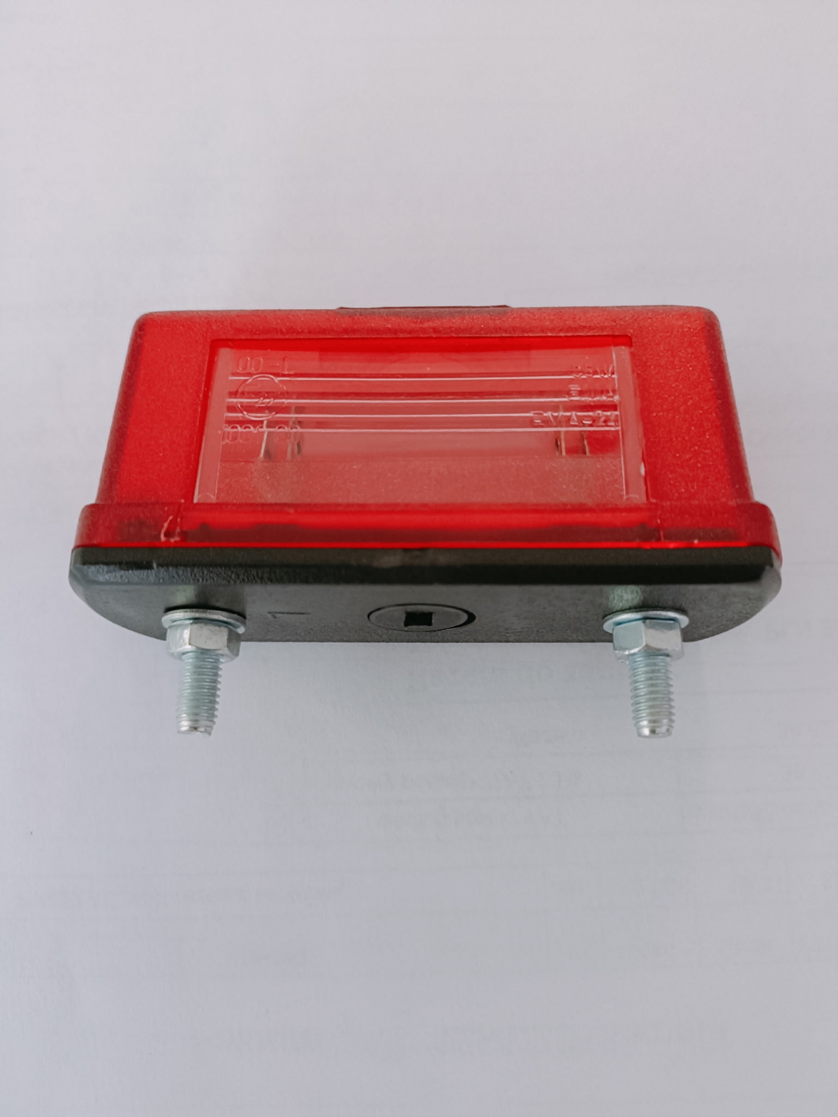 Home ŻUK części › LAMPA OŚWIETLENIA TABLICY REJESTRACYJNEJ mała 75mm/40mm-śruba m5 rozstaw 55mm/mini czarna lub czerwona